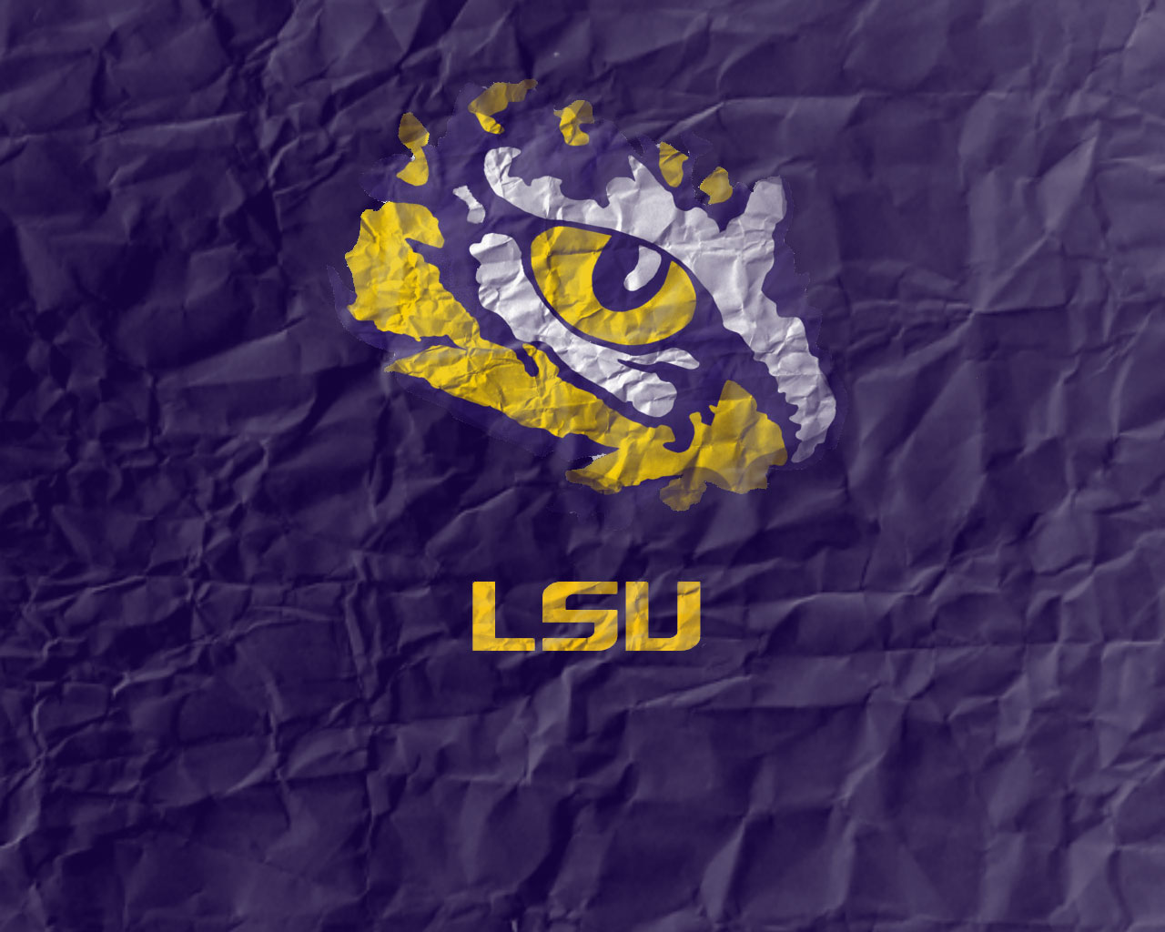 Description: A crumpled paper with the lsu logo on it and the word lsu on it in gold and purple colors.