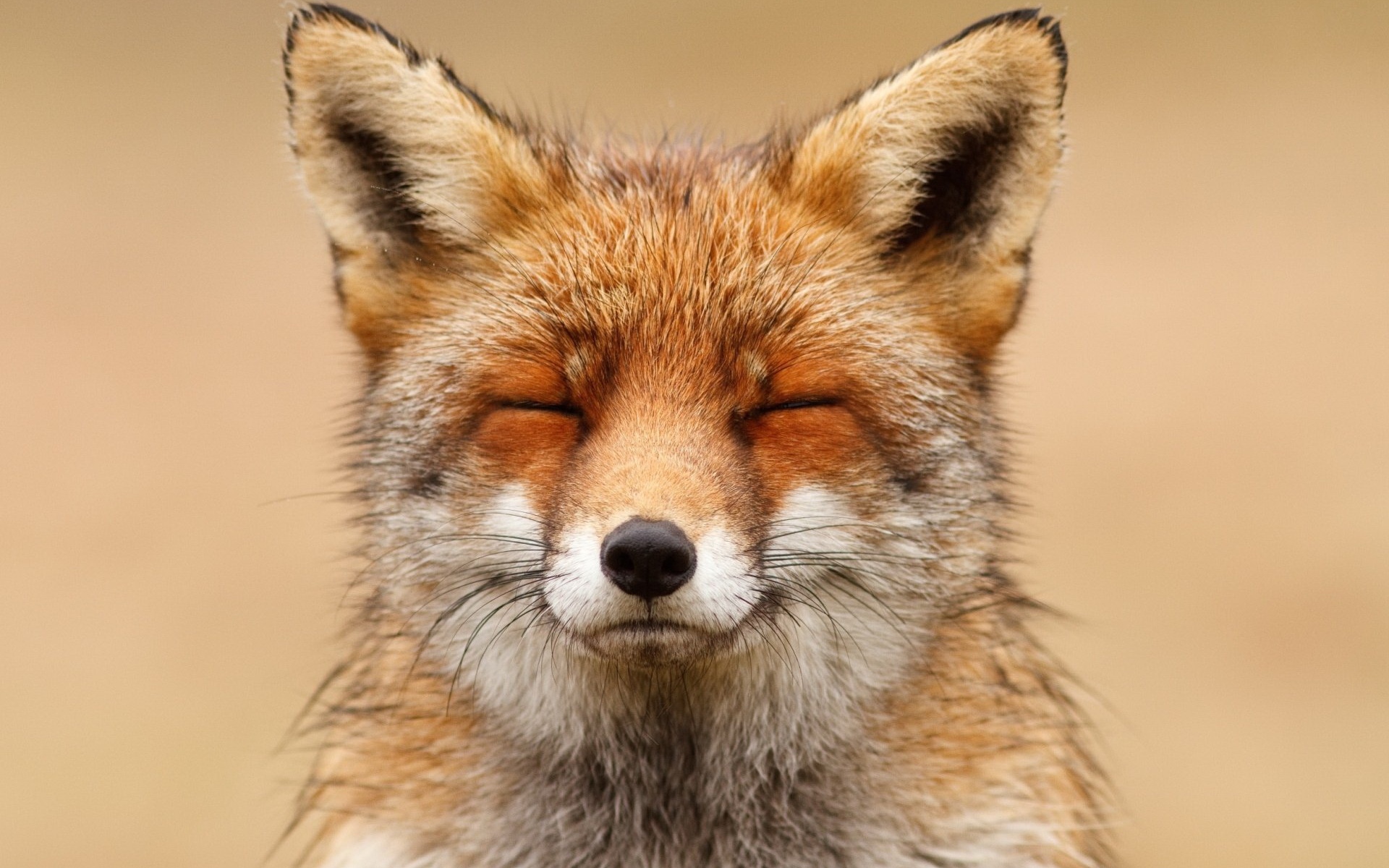 Description: A close up of a fox with its eyes closed and eyes closed.